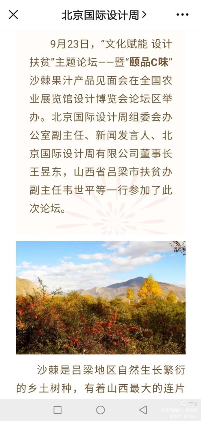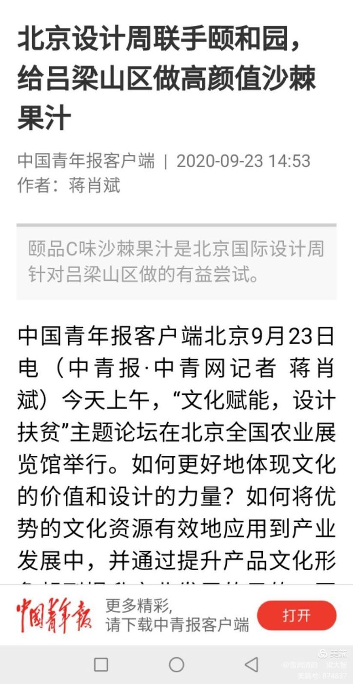 論壇期間,這款設(shè)計(jì)精美、顏值爆表的“文化賦能、設(shè)計(jì)扶貧”的產(chǎn)品“頤品C味”也受到了媒體的關(guān)注,這款由北京送給貧困地區(qū)的北京禮物,將會(huì)以新的面目與廣大消費(fèi)者見(jiàn)面,讓沙棘走出大山,走進(jìn)城市生活。